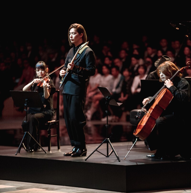 日本知名吉他艺术家Ichika Nito,弹奏出知名演奏家坂本龙一的神曲Merry Christmas Mr. Lawrence时,随着舞者在米黑对比的简约秀场中更显张力十足。曾在达卡秀场演出的塞尔加尔嘻哈天王Nix也在表演最后惊喜登台,合作演出吉他手Ichika Nito的作品〈The World Is Still Beautiful〉更带出CHANEL的文化交流创新视野。